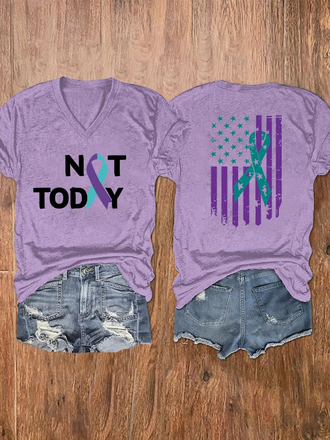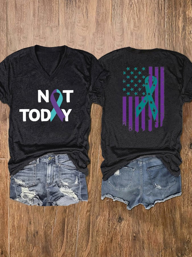 Women’s Suicide Prevention Awareness Not Today Print V Neck T-Shirt