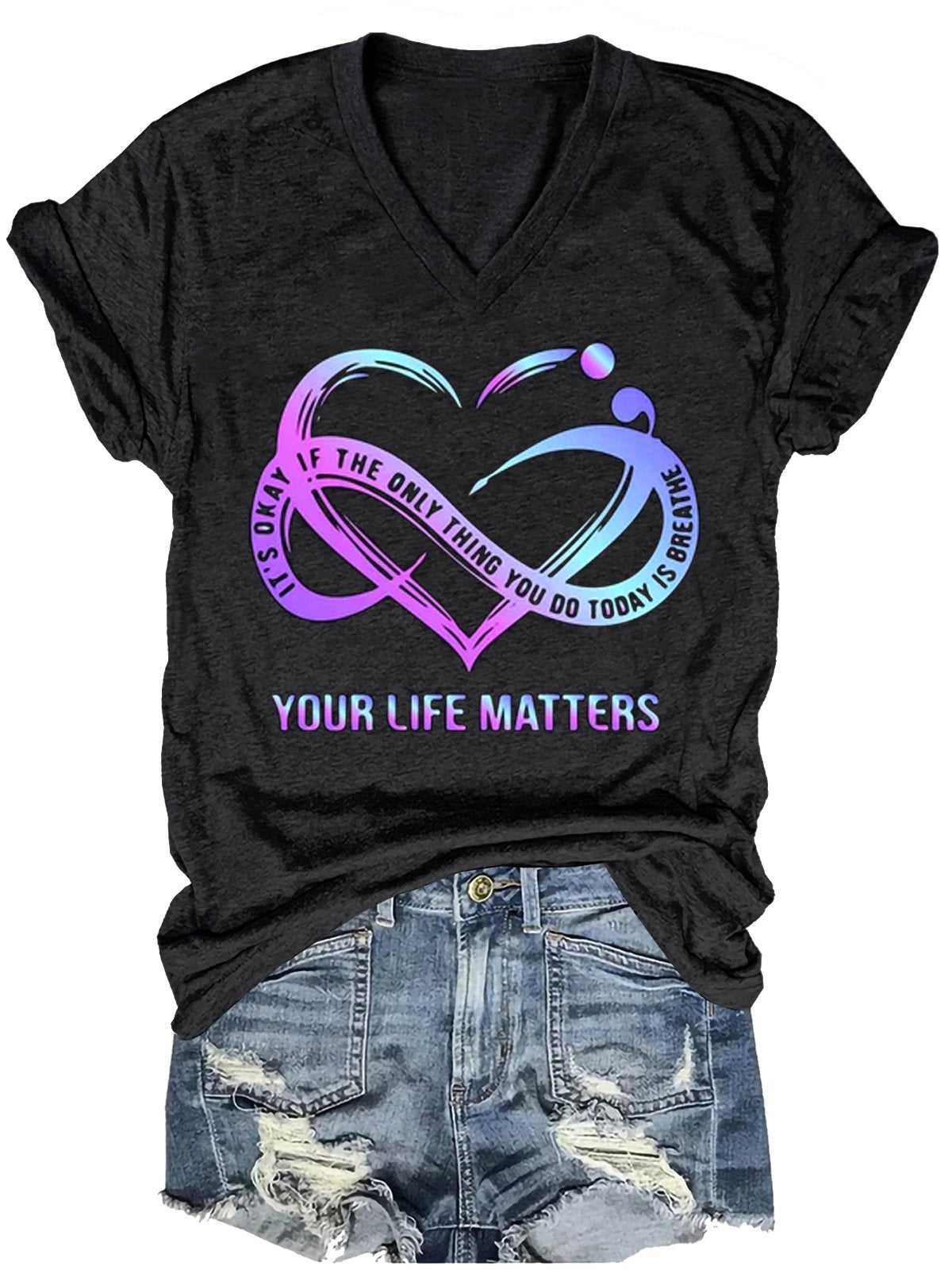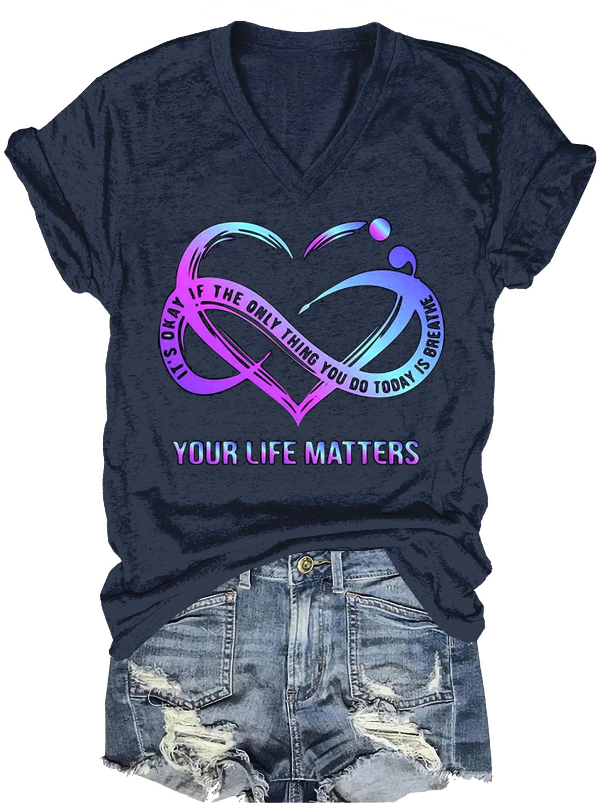 Women’s Stay The World Is Better With You In It Suicide Awareness Print V-Neck T-Shirt
