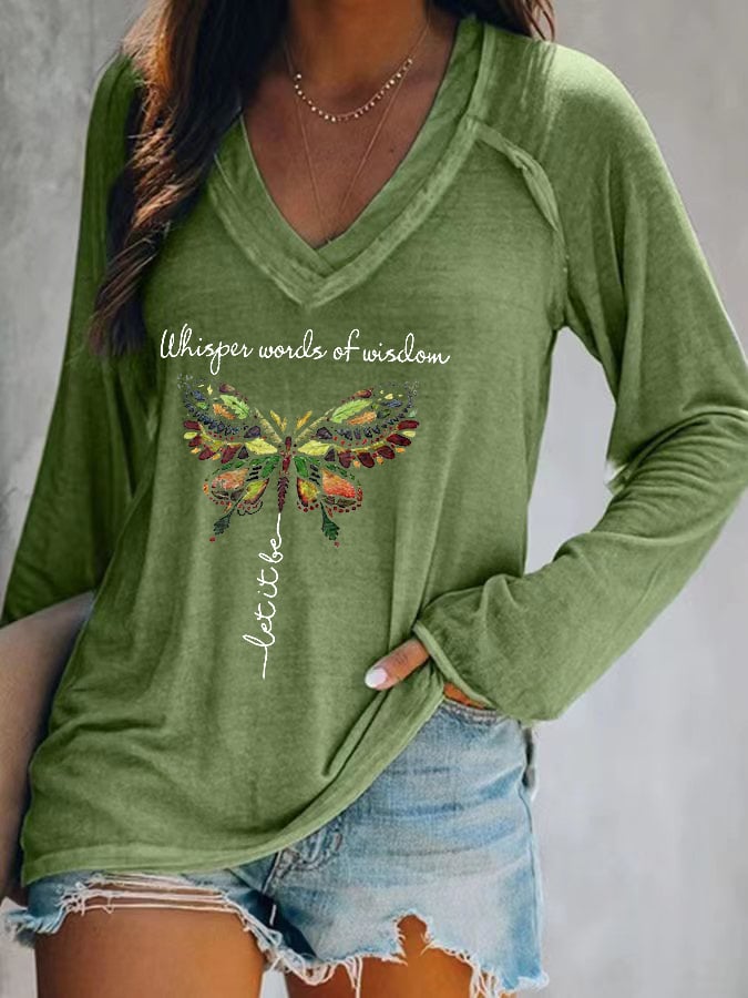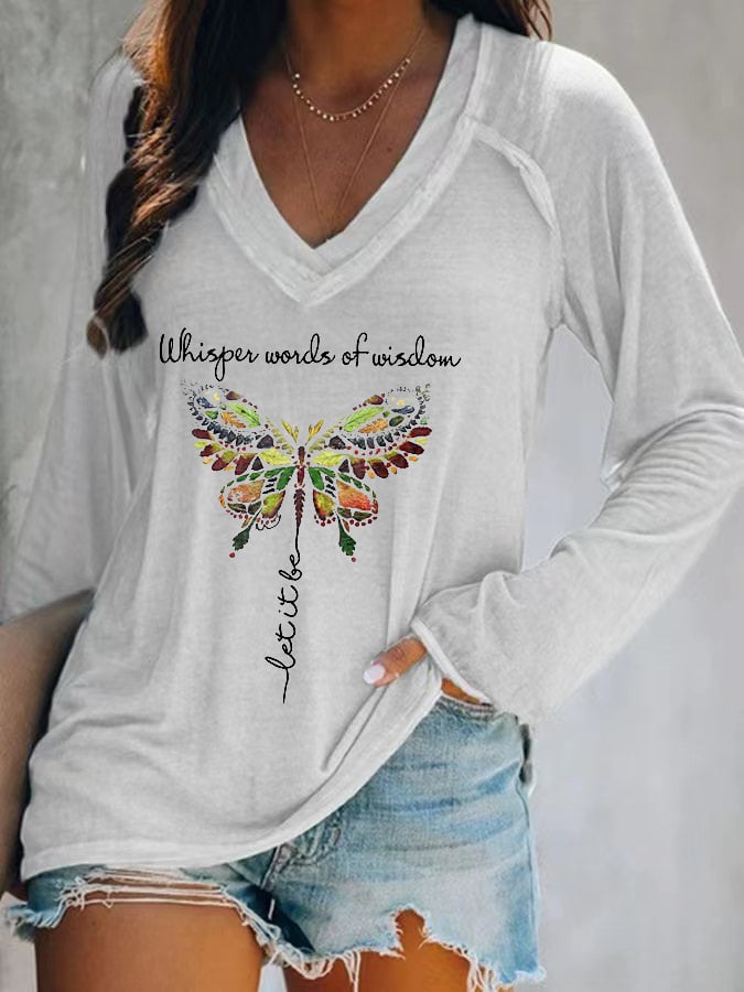 Women’s Whisper Word Of Wisdom Let It Be Print V-neck T-shirt