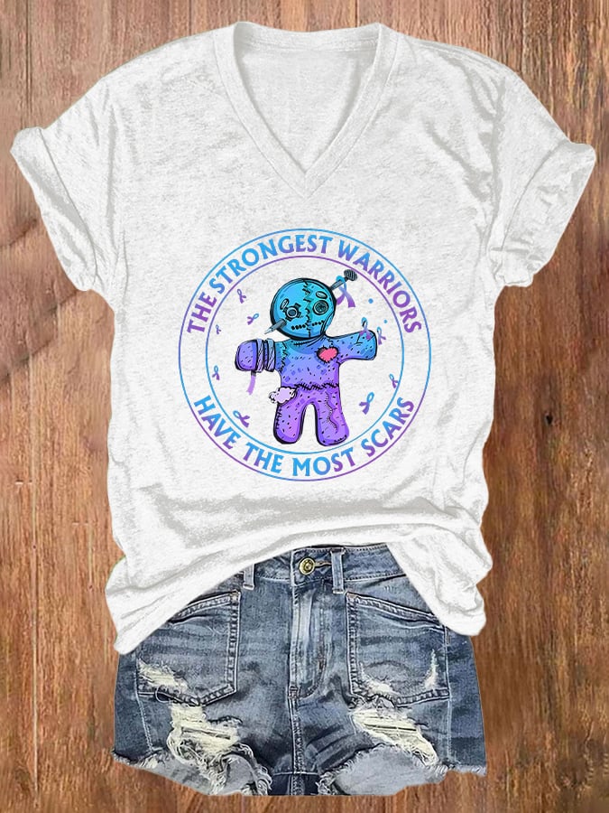 Women’S The Strongest Warriors Have The Most Scars Print Short Sleeve Casual T-Shirt