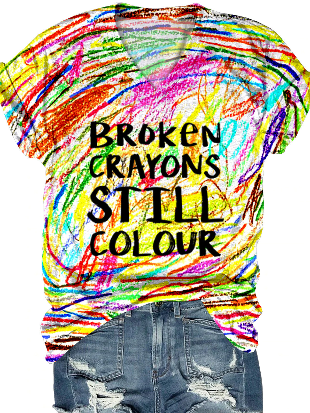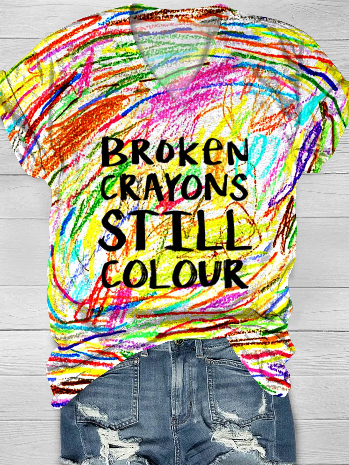 Broken Crayons Still Colour Mental Health Print Casual V-neck T-shirt