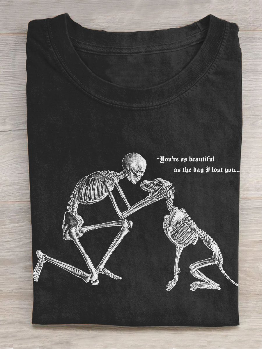 Dog And Human Skull You’re As Beautiful As The Day I Lost You Art Print Design T-shirt