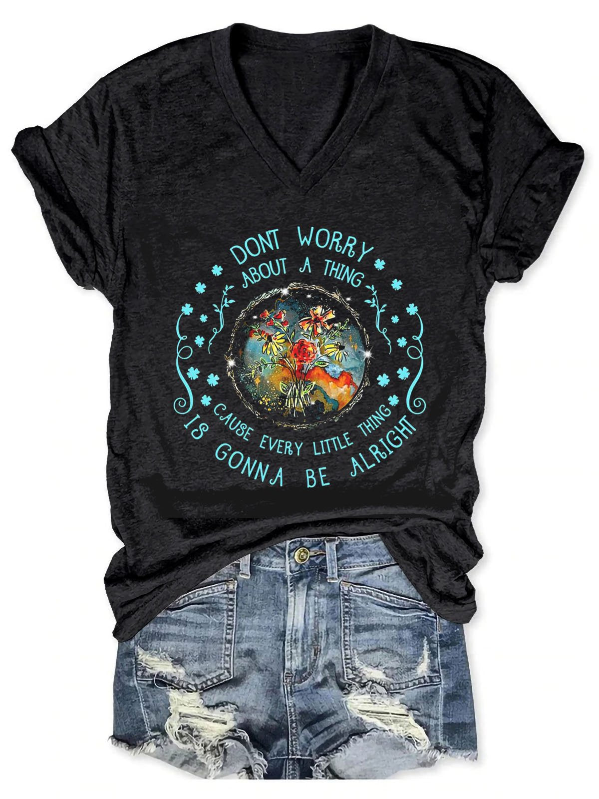 Don’t Worry About A Thing Cause Every Little Thing Is Gonna Be Alright Art Print Casual T-shirt