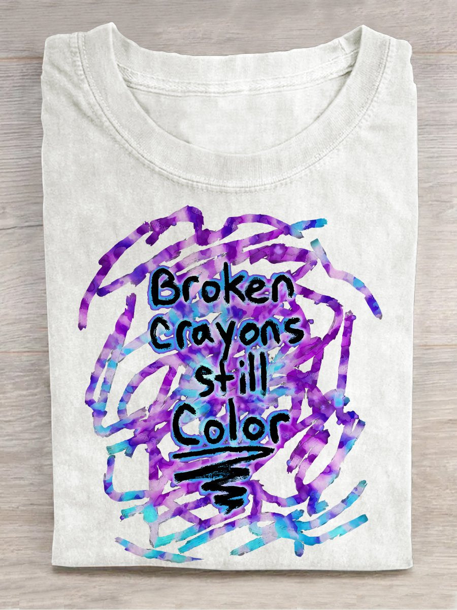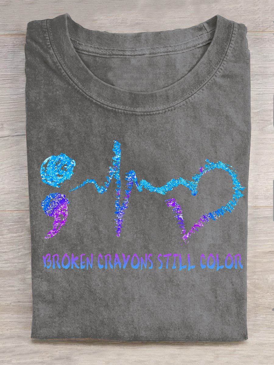 Broken Crayons Still Color Semicolon Suicidal Prevention Print Casual T-shirt