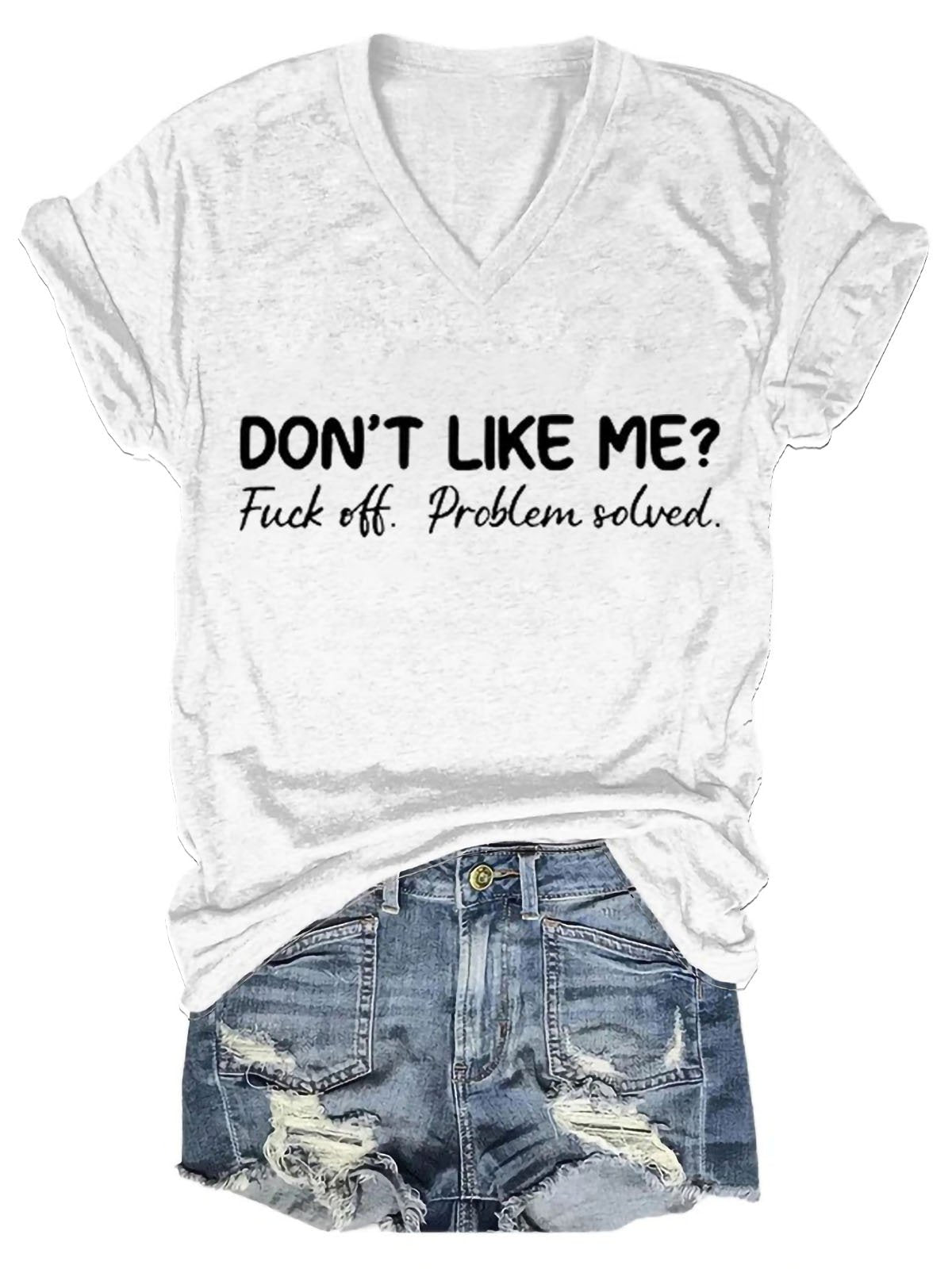 Don’t Like Me Fuck Off Problem Solved Art Print V-neck Casual T-Shirt