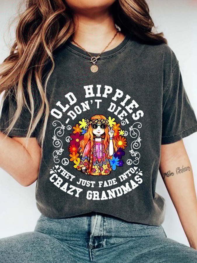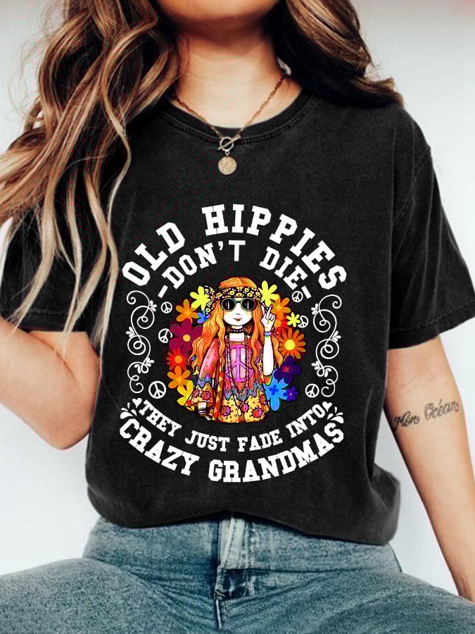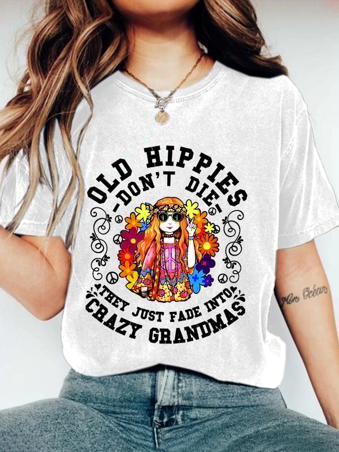 Women’s Hippie Style Printed Crew Neck T-Shirt